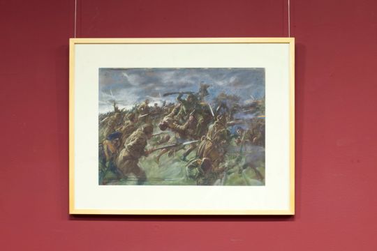 У оквиру изложбе публика ће први пут моћи да види два, до сад готово непозната дела. Прво је недавно откупљена потресна композиција Милоша Голубовића, сложене симболике и снажне антиратне поруке, која обогаћује иконографију и перцепцију ратног искуства у српској међуратној уметности. Друга је монументално платно „Бој на Чегру” Боже Илића, које нам показује овог мајстора соцреализма у потпуно другачијем и неочекиваном светлу. Необична је судбина ове, готово апстрактне слике, која је након првог излагања 1954, због своје модернистичке естетике била скинута с рама и као неподобна склоњена у депо, да би тек након захтевне рестаурације и конзервације, коју је Музеј предузео протекле године, могла најзад да буде изложена пред публиком.